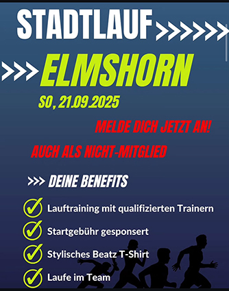 Melde dich jetzt an! Du fühlst dich noch nicht fit genug dafür? Kein Problem: Als fit&flex Firmenfitness-Mitglied kannst du beim kostenfreien Lauftraining im Beatz Fitness Elmshorn mitmachen. Außerdem bekommst du die Startgebühr gesponsert sowie ein stylisches Beatz T-Shirt geschenkt! Melde dich im Beatz für den Stadtlauf an und laufe mit im Team Beatz! Habt ihr noch Fragen? 04121 - 789 70 74